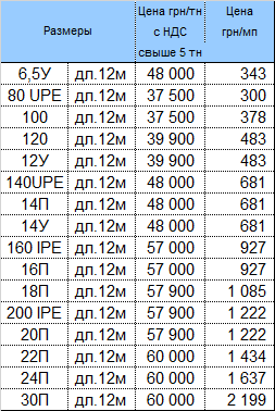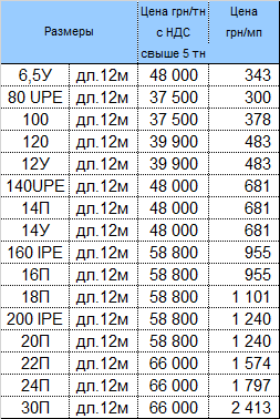 Довжина швелера (Київ) може бути кратною, мірної, або